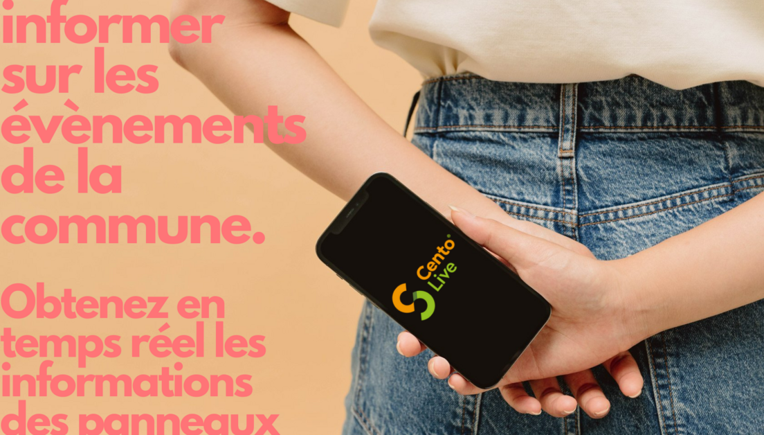 Consultez en temps réel les évènements des panneaux lumineux en téléchargeant l'application CENTOLIVE sur votre téléphone portable et/ou tablette ! (via Apple Store ou Play Store)